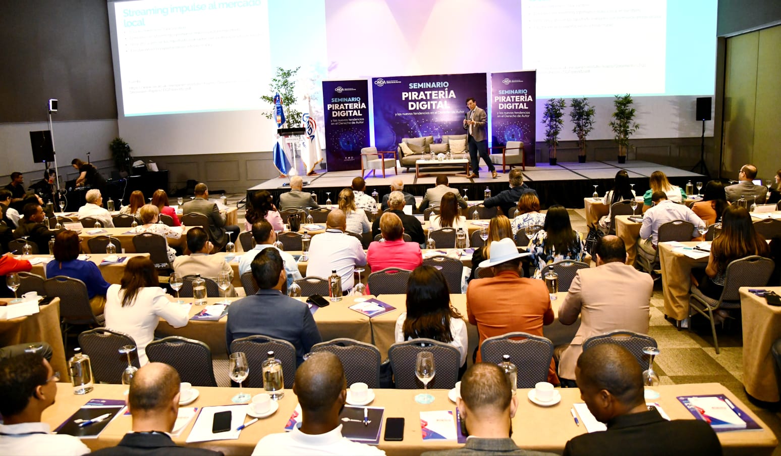 El seminario organizado por la Oficina Nacional de Derecho de Autor (ONDA), la Sociedad Dominicana de Productores Fonográficos (SODIMPRO) y la Federación Internacional de la Industria Fonográfica (IFPI), y comenzó en la mañana en el Hotel Catalonia y concluirá con las exposiciones del licenciado José Ruben Gonell Cosme y el licenciado Victor Ito Bisonó, ministro de Industria, Comercio y Mipymes (MICM).