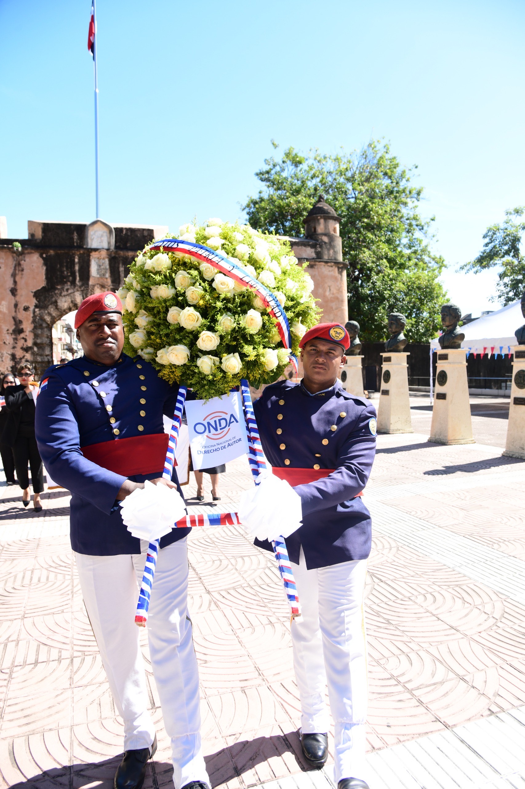 SANTO DOMINGO. – La Oficina Nacional de Derecho de Autor (ONDA) depositó el viernes 30 de enero una ofrenda floral en el Altar de la Patria, con motivo de celebrarse el Mes de la Patria y el 182 aniversario de la Independencia Nacional, en un acto en el que estuvieron presentes funcionarios y colaboradores de la institución gubernamental.