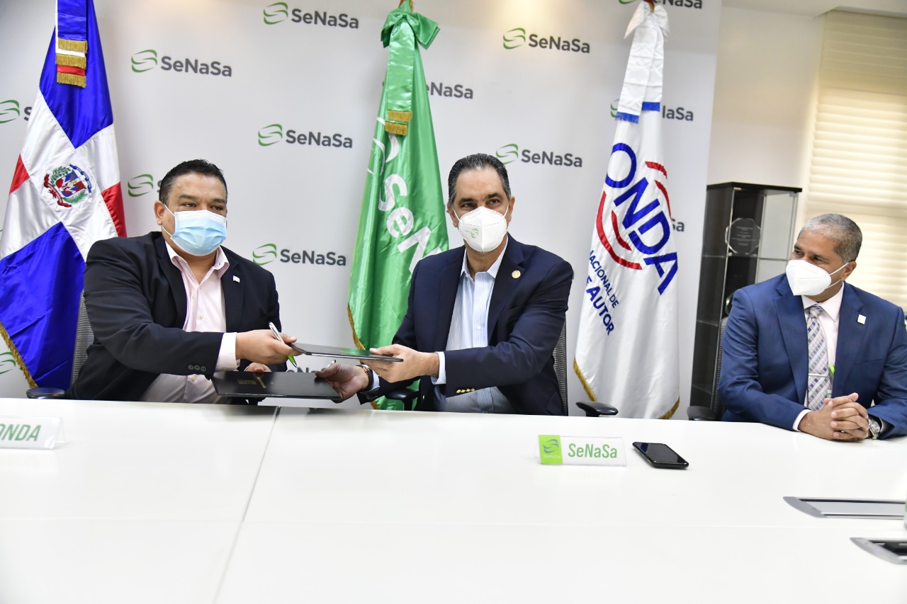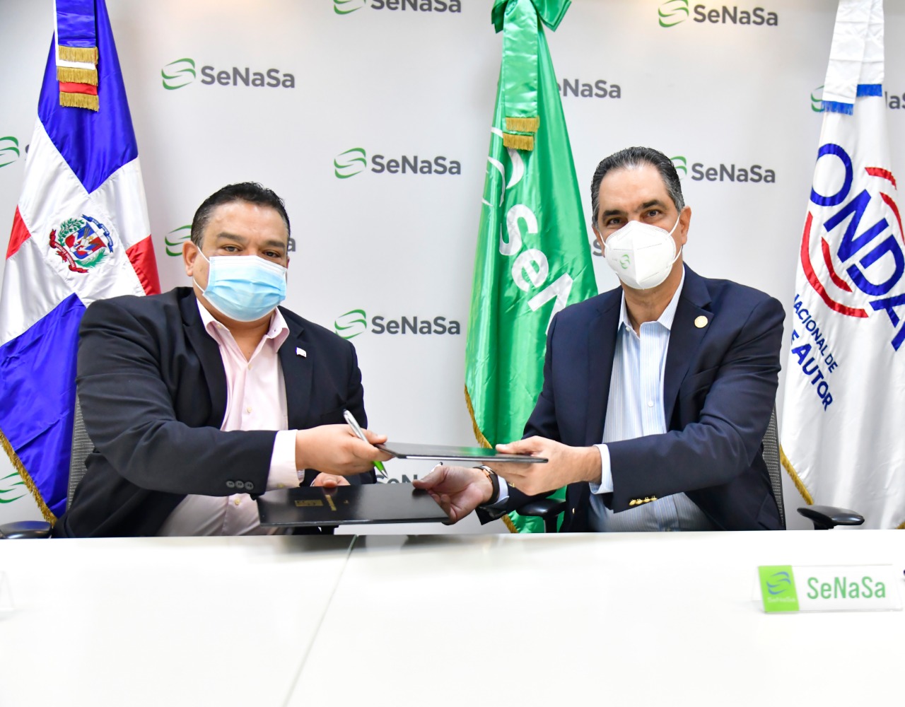 SANTO DOMINGO.-La Oficina Nacional de Derecho de Autor y el Servicio Nacional de Salud, firmaron hoy un convenio de cooperación interinstitucional, donde (SeNasa) se compromete a garantizar coberturas a los dependientes no directo de los servidores de la (Onda) a través del régimen subsidiado.