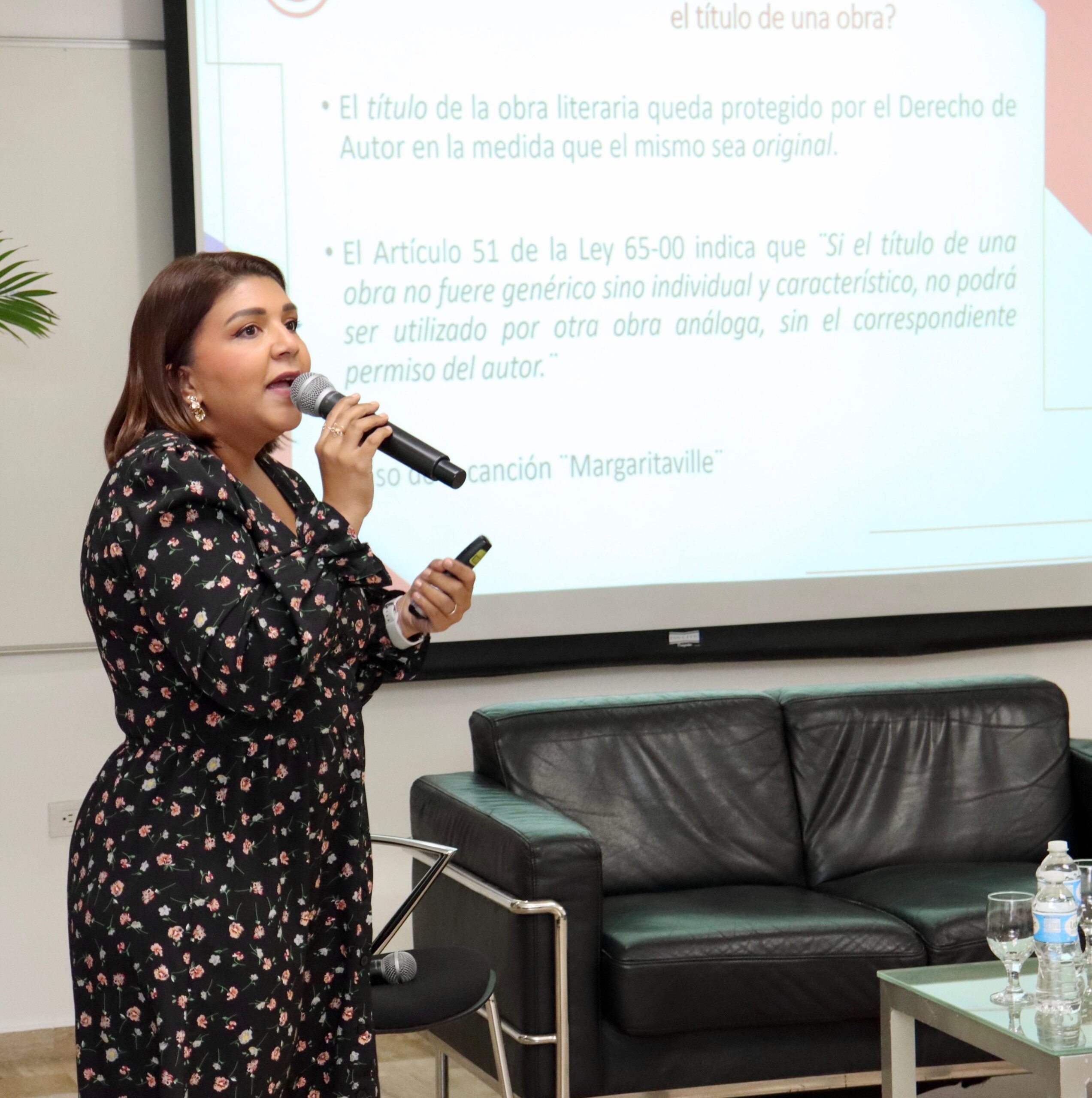 Durante su intervención, la funcionaria explicó las dos principales ramas legales que amparan estas creaciones en la República Dominicana: la Ley 20-00 sobre Propiedad Industrial y la Ley 65-00 sobre Derecho de Autor, que da origen a la ONDA. Esta última ley, explicó, no solo reconoce los derechos exclusivos de los autores sobre sus obras, sino que también contempla los derechos conexos, que protegen a quienes participan en la difusión de una obra, como intérpretes, productores y técnicos.
