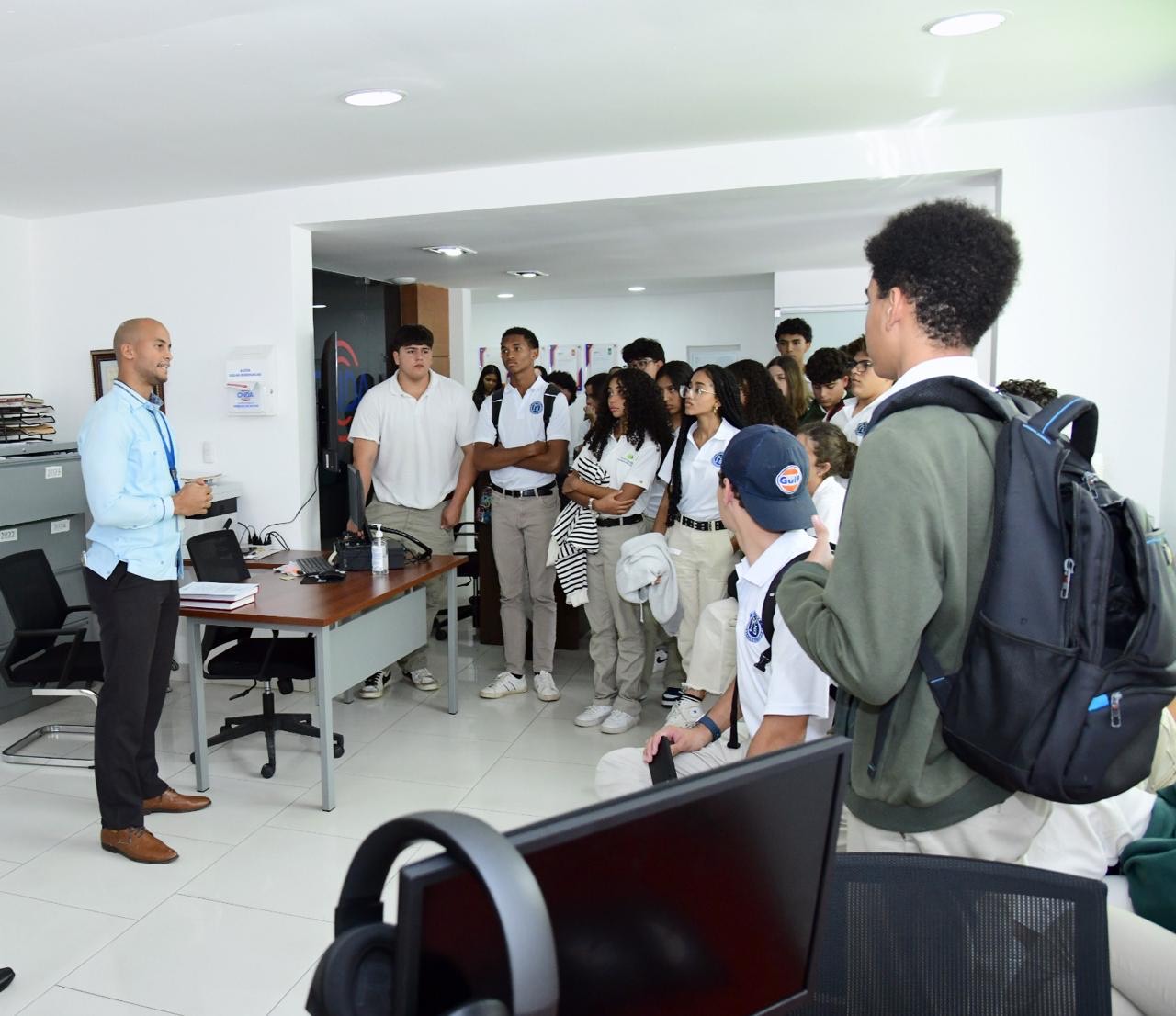 Al llegar, los estudiantes fueron recibidos por Fanny Suero, encargada del Centro de Capacitación, Promoción y Desarrollo del Derecho de Autor. Durante un recorrido por las instalaciones de la ONDA, Suero y otros funcionarios, como Eduard Ramos, encargado de Planificación y Desarrollo, y José Gregorio Calderón Tejeda, de Relaciones Interinstitucionales, guiaron a los jóvenes por los distintos departamentos, brindándoles una visión completa de las tareas que realiza la institución.